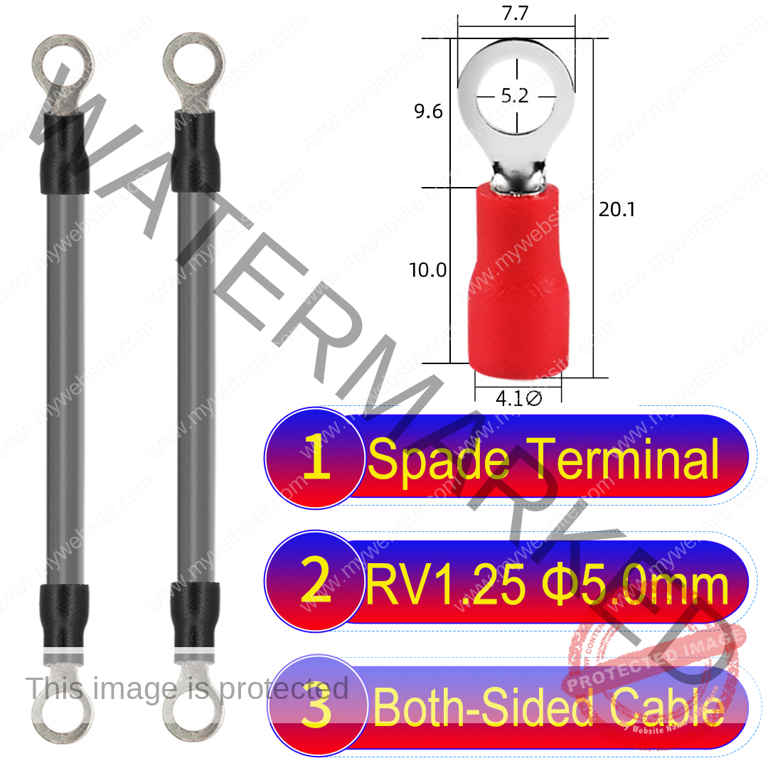 RV1.25mm 5mm both sided ring terminal cable Grey with 18AWG support, tinned copper, and UL1007 PVC insulation. Durable and safe for home, automotive, and industrial use.